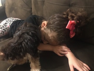 Finally after hours of playing with her new puppy Olive falls asleep right next to her pup. As Olive naps from being tired Rose continues to play right next to her so that she doesn’t leave her side. As you can see in these photos above the bond between these two is not only precious but also pure. It is probably going to last a life time not only to them but anyone who gets to witness it.
