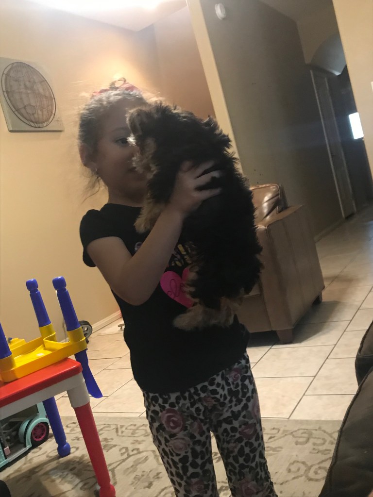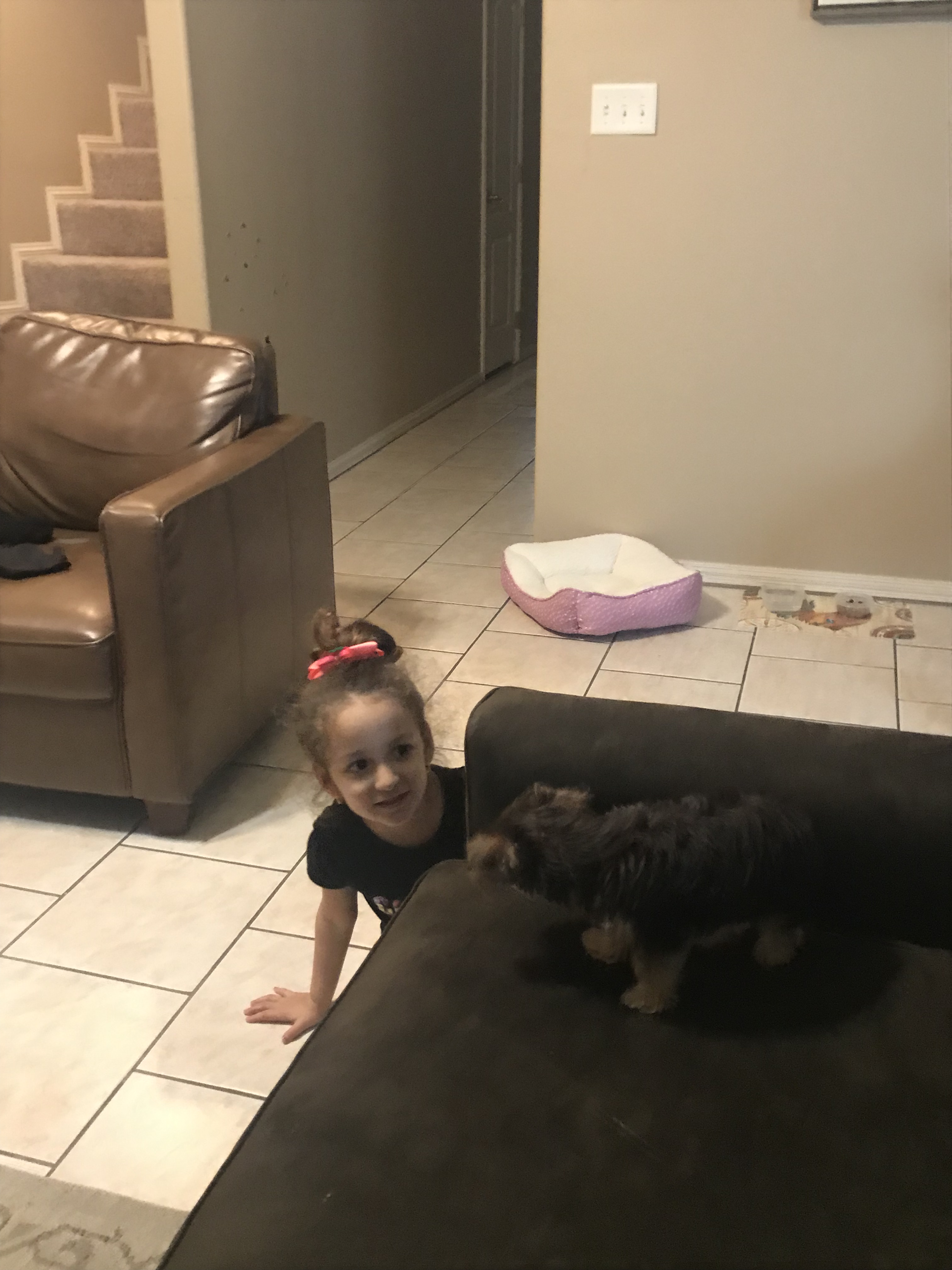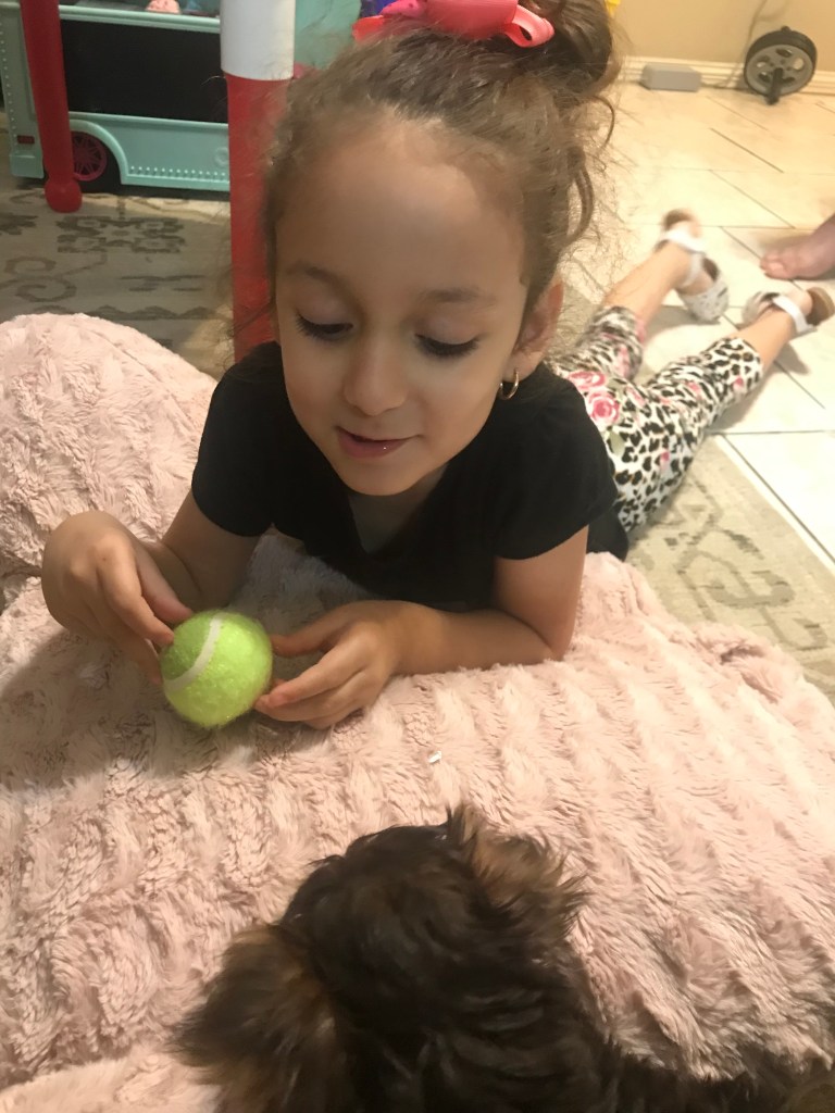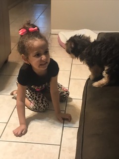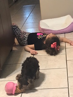 Saturday afternoon June 15, 2019 Olive four years old showed me her new family member who goes by the name of Rose a Yorkshire terrier. She told me that she got to pick her name and that it was the best gift ever. Being so young a puppy was the best gift anyone could give her. With excitement I watched as these two got acquainted.